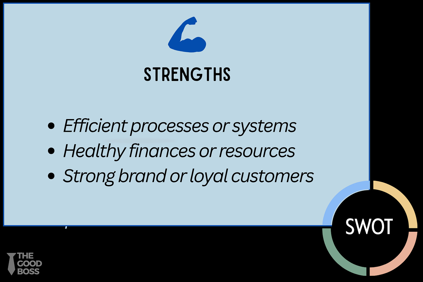 Strengths – What you do well. The resources, skills, or advantages that give you an edge.